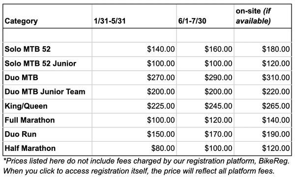 We reserve the right to alter the racecourse at any time up until race day but we promise it will still be a hard and fun day in the saddle or on foot! A rain cancellation is a possibility as well. The City of Steamboat Springs has final say on race day conditions. Slick mud on Howelsen Hill is not good for riding or for trail health.